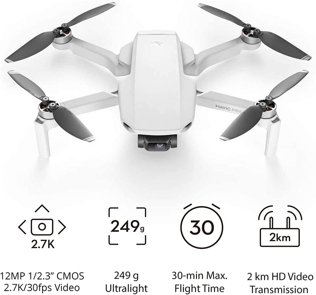 - FEATURES: Weighing just 249 grams, Mavic Mini is extremely light and portable. Due to its lightweight design, Mavic Mini is placed inside the lowest and safest weight class of drones